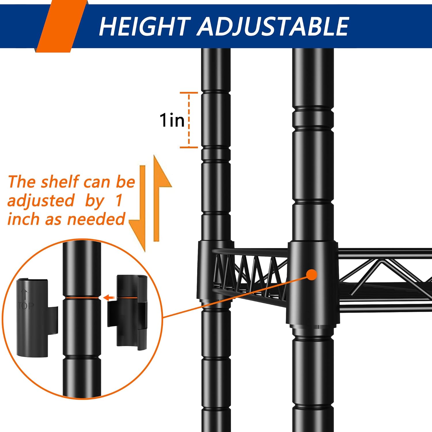 Constructed with durable metal, this storage rack features adjustable shelves to accommodate items of various sizes. The sleek black finish adds a modern touch to any space.