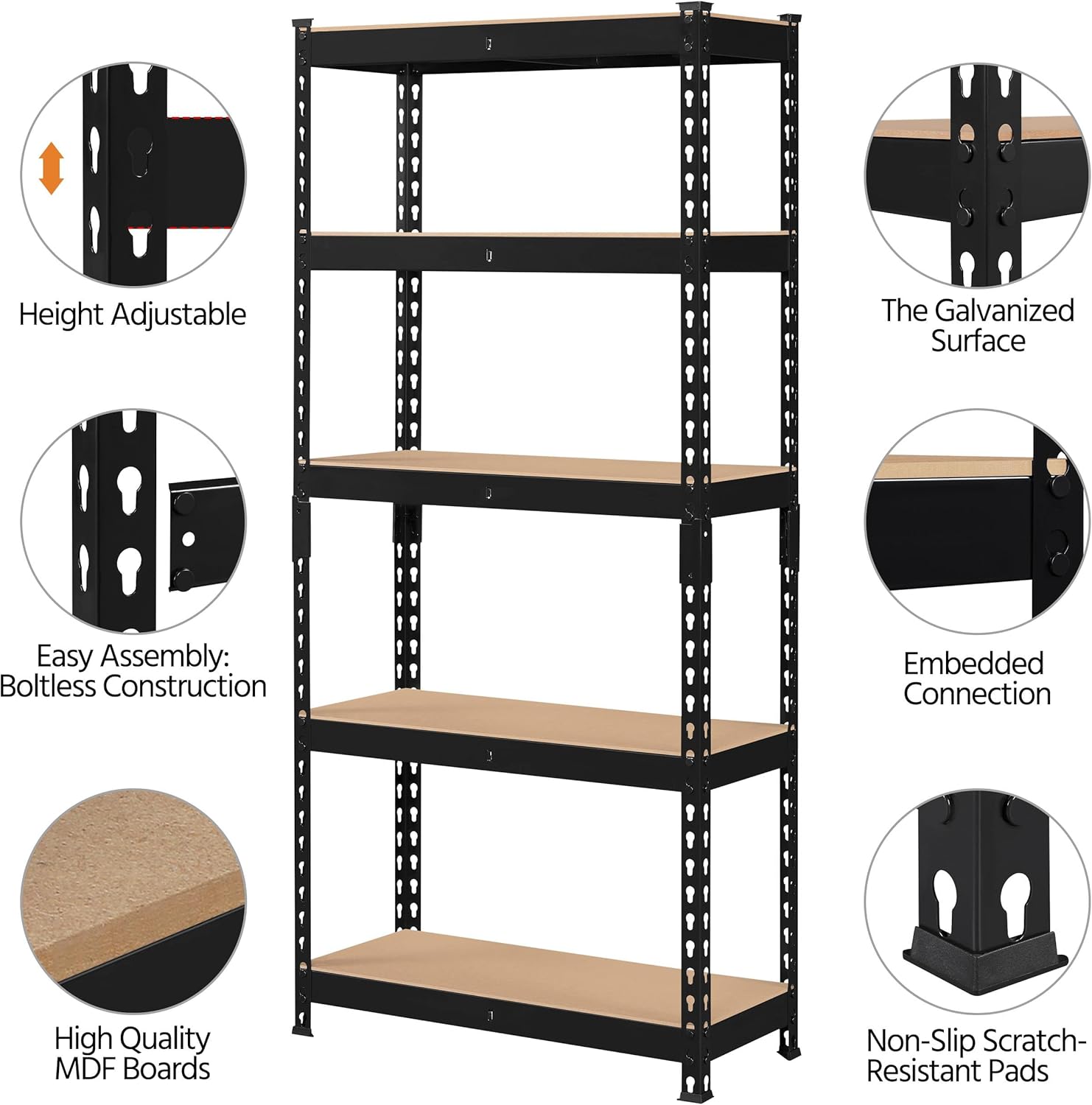 Introducing the Topeakmart 5-Tier Utility Shelves, the perfect storage solution for your warehouse, garage, shed, or basement. These durable metal storage shelves feature adjustable shelving units, allowing you to customize the shelf heights to fit your specific needs.