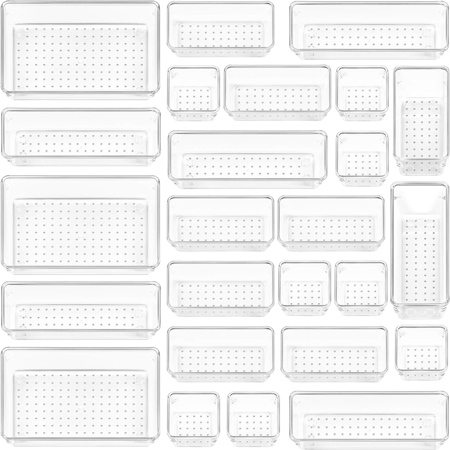 Say goodbye to cluttered drawers and hello to a more organized space with the Vtopmart 25 PCS Clear Plastic Drawer Organizers Set.